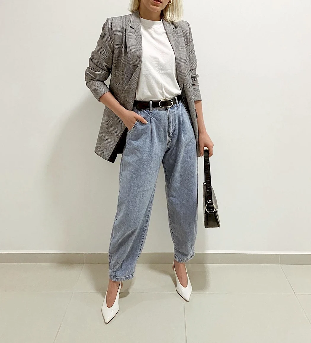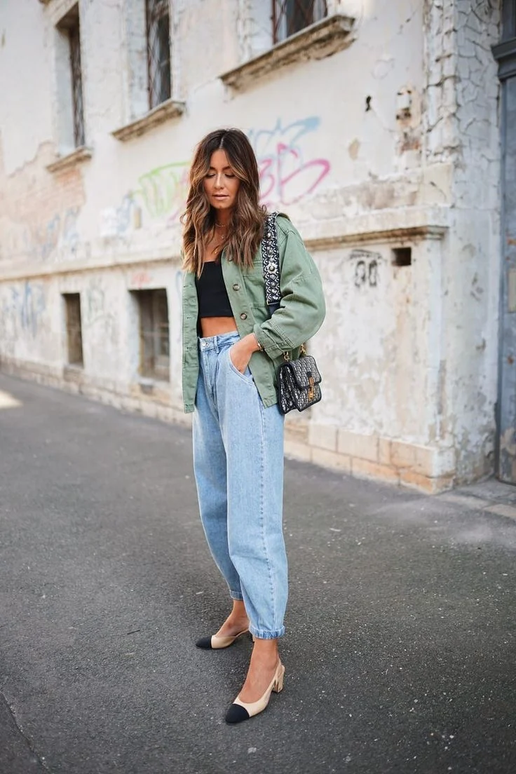 Каблуки: Да, багги и каблуки – это не миф! Туфли-лодочки или ботильоны на устойчивом каблуке сделают образ более женственным и вытянут силуэт. Только следите, чтобы длина джинсов была либо идеальной (с легким брейком на обуви), либо они были укороченными. Иначе вы рискуете запутаться в собственных штанинах, особенно когда спешишь по эскалатору в метро.