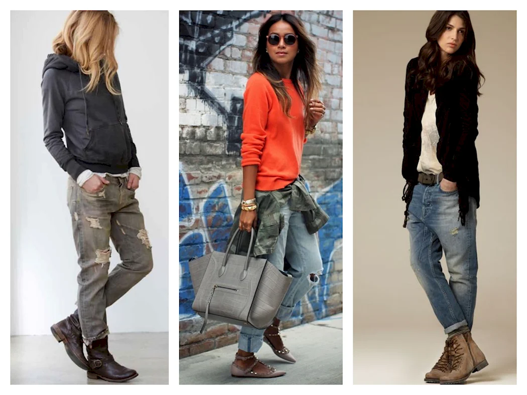 Свободные футболки и свитшоты: Здесь важно не переборщить с объемом. Заправьте футболку полностью или частично в джинсы, чтобы обозначить талию. Или сделайте модный узел, если футболка позволяет. Иначе вы рискуете выглядеть как бесформенный балахон. Я как-то раз надела оверсайз свитшот с очень объемными багги, и подруга спросила:
