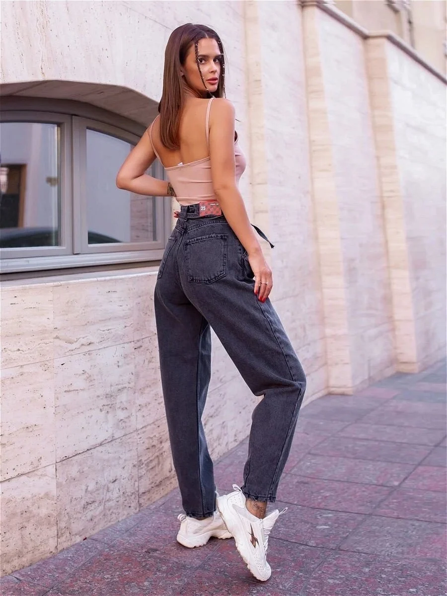 Ремни: Высокая посадка багги прямо просит ремня! Он поможет подчеркнуть талию. Выбирайте от классических кожаных до массивных цепей в зависимости от настроения. Мой мини-совет: если джинсы немного великоваты в талии широкий ремень на два размера больше затянутый и свободно свисающий концом выглядит очень стильно и не дает джинсам сползать.