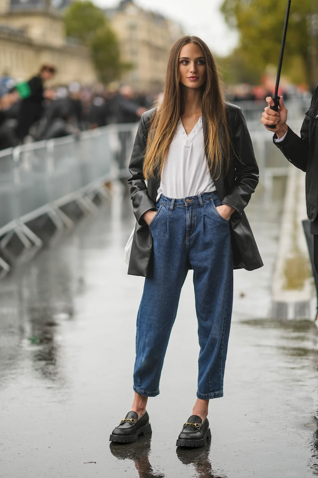 Лоферы и мюли: Для более расслабленного, но при этом стильного образа. Это идеальный вариант для весны-лета или теплой осени. Смотрятся очень круто с укороченными багги. В моем опыте, это спасение, когда хочется выглядеть элегантно, но при этом чувствовать себя свободно.